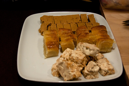 El turrón se encuentra en diversas localidades a lo largo de la geografía mediterránea. En algunos casos se denomina nougats y consisten en una mezcla de un elemento dulce coagulado en el que se encuentra inmerso una cierta cantidad de frutos secos.