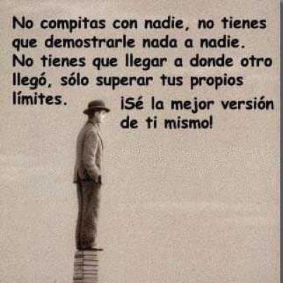 No compitas con nadie, no tienes que demostrarle nada a nadie. No tienes que llegar a donde otro llegó, solo superar tus propios límites. ¡Sé la mejor versión de ti mismo!