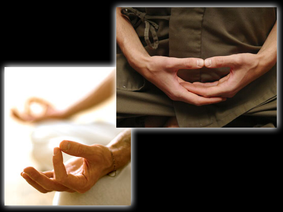 Los ojos han de estar entornados, y la mirada ha de dirigirse hacia el suelo, mientras que la barbilla ha de estar recogida hacia el cuello y la lengua apretada contra el paladar. Las manos, con las palmas hacia arriba, se colocan sobre el regazo, en contacto con el abdomen, la izquierda sobre la derecha, los pulgares tocándose ligeramente por las yemas. Para empezar una sesión normal no suele durar más de una hora.